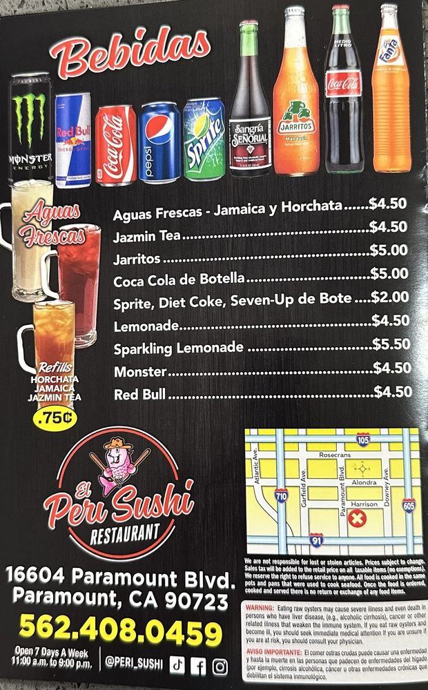 El PeriSushi Restaurant, located in Paramount, CA, offers a unique fusion of Mexican and Japanese flavors. The menu features a variety of appetizers like the Jalapeno Boom and Hot Chiles, as well as signature rolls such as the Peri Tortuga and El Despeinado Roll. Customers rave about the delicious San Luis roll and the refreshing horchata. The cozy atmosphere and attentive service make dining here a delightful experience. Despite a slight decline in quality, loyal patrons still appreciate the generous portions and creative dishes. The restaurant's recent remodel adds to its inviting charm. If you're in the mood for Mexican-style sushi with a twist, El PeriSushi is the place to go.